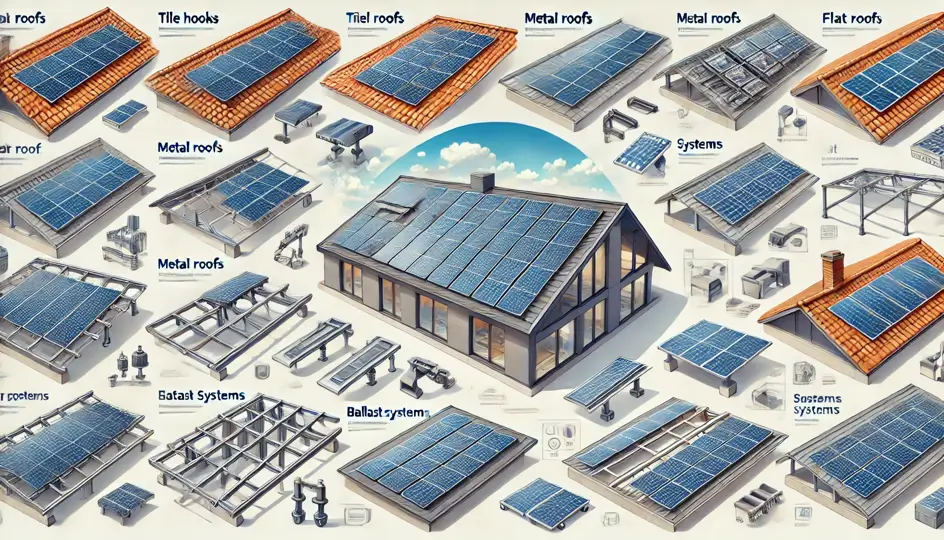Das Montagesystem hält die Photovoltaik-Module sicher auf Deinem Dach. Es gibt verschiedene Systeme für unterschiedliche Dachtypen.